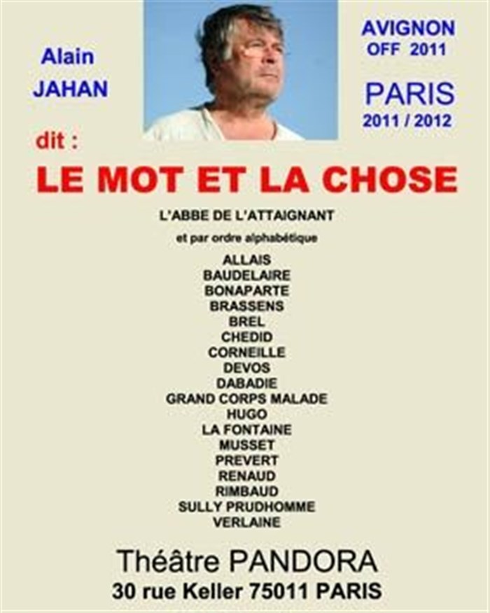 L’événement Le mot et la chose de type Seul(e) en Scène, organisé ici :