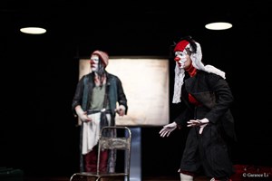 Deux clowns pour une histoire ressemblant étrangement au mythe de Pyrame et Thisbé, les amants babyloniens qu'un mur séparait (les murs, déjà !)