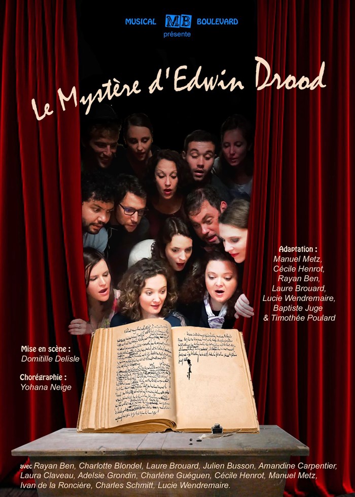 Ayant vécu à New York pendant plus de 20 ans je suis tombé en amour avec les comédies musicales et j'ai notamment eu la chance de voir Drood en 1987 et quelle ne fut pas ma surprise de découvrir ce musical à l'affiche la semaine dernière ! Pas toujours très fan des adaptations françaises et de leurs distributions avec de très bons chanteurs certes mais pas forcément comédiens, je suis resté sans voix devant cette jeune troupe qui a tout compris à ce que devait être une comédie musicale c'est à dire finalement une vraie pièce de théâtre avec des numéros chantés et dansés, dernière discipline où la troupe peut encore s'améliorer d'ailleurs. Mais à côté de ça une finesse de jeu incroyable, on s'attache tout de suite aux personnages et il m'a été difficle à la fin de choisir le détective et l'assassin tellement j'avais tous envie de les revoir, mention spéciale à ces messieurs de la troupe qui ont pour la plupart une énergie et une présence épatantes et qui portent véritablement ce spectacle. On peut sentir une vraie direction d'acteurs derrière ces comédiens et je finirai donc par saluer le travail de la metteure en scène qui a réussi à insuffler l'énergie, le rythme, la justesse, l'humour dans cette comédie musicale qui m'a fait revivre mes années new-yorkaises !!! Merci à toute la troupe