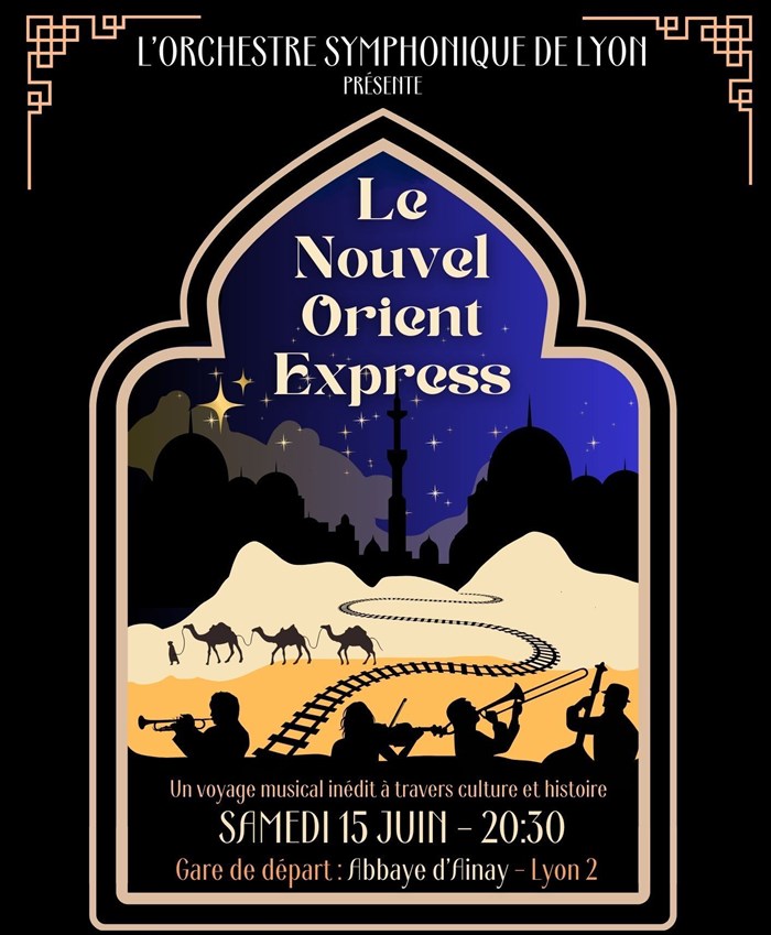 Concert "Le Nouvel Orient Express" par l'Orchestre Symphonique de Lyon : embarquez pour un voyage musical inédit à travers cultures et histoires depuis l'Abbaye d'Ainay le Samedi 15 juin 2024 à 20h30.