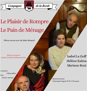 Le Pain de Me´nage et le Plaisir de Rompre, deux courtes pièces écrites par Jules Renard en 1898 et en 1897, sont souvent jouées ensemble... Et pour cause : elles ont un thème commun, la vie conjugale ! Jules Renard vous offre des dialogues savoureux, qui font mouche, pour décrypter de façon très moderne l'usure du temps, la force des sentiments, les rêves de liberté. Il saisit ses personnages à des moments décisifs de leur vie sentimentale, avant ou après le mariage et vous tend un miroir à la fois drôle et tendre sur la vie de couple.