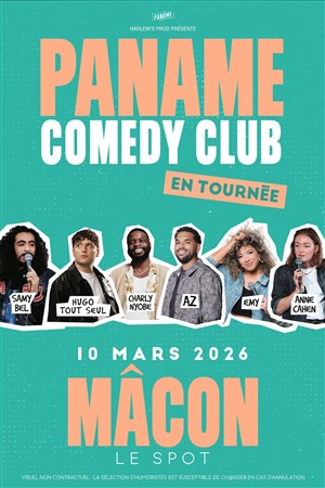Le Paname Comedy Club En Tournée présente une sélection d'humoristes programmés au Paname Comedy Club et/ou invités par la production dans l'esprit du Paname Comedy Club pour la tournée. Cette sélection peut être susceptible de changer sur la représentation en cas d'annulation d'un des humoristes. Celui-ci sera remplacé par la production. Les visuels sont non-contractuels.