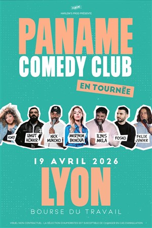 Le Paname Comedy Club En Tournée présente une sélection d'humoristes programmés au Paname Comedy Club et/ou invités par la production dans l'esprit du Paname Comedy Club pour la tournée. Cette sélection peut être susceptible de changer sur la représentation en cas d'annulation d'un des humoristes. Celui-ci sera remplacé par la production. Les visuels sont non-contractuels.
