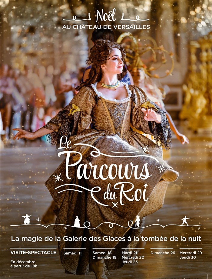 Du Salon d'Hercule à la Chambre de la Reine en passant par la Galerie des Glaces illuminée de feux d'artifice royaux, des musiciens, danseurs, chanteurs, escrimeurs et comédiens se préparent à vous accueillir sous les ors des Grands Appartements pour une visite-spectacle hors du commun vous menant jusqu'à la Galerie des Batailles, ou vous irez à la rencontre d'un invité très spécial...le père noël baroque !