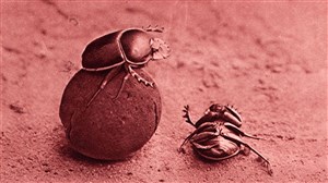 surtout avec le scarabée, le plus poète d'entre tous, inlassablement occupé à rouler sa pelote de bouse...