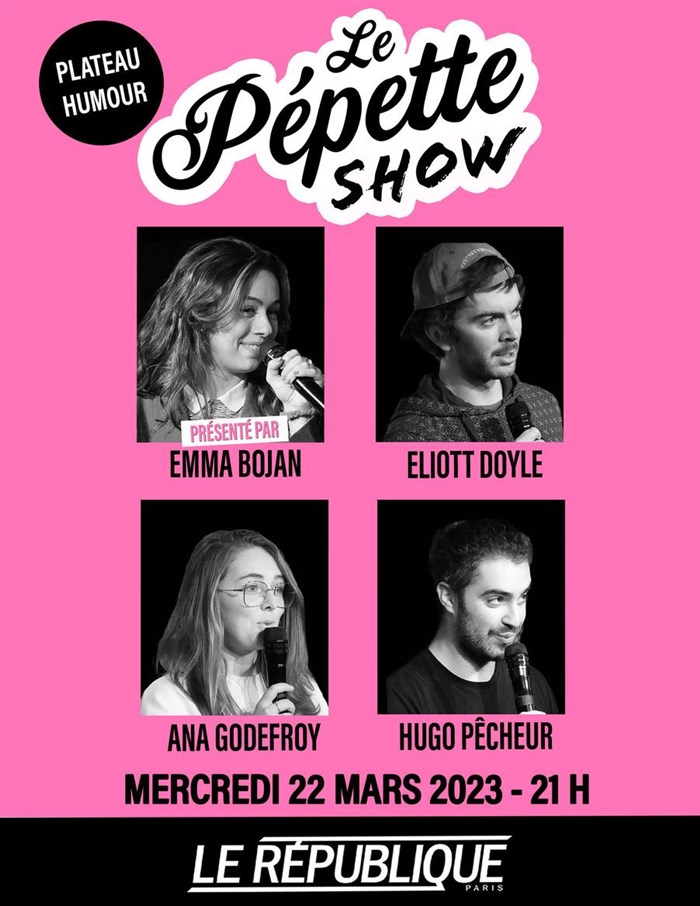 Le pepette show c'est l'équivalent d'une énorme contre soirée avec 6 potes qui viennent tour à tour te faire rire. Le tout dans l'un des théâtres les plus mythiques de Paris: Le République.