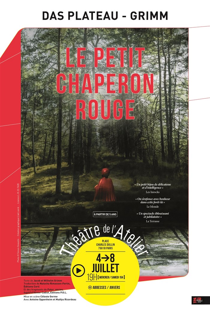 Le Petit Chaperon rouge est l'un des premiers contes qu'on lit aux enfants, l'un des plus connus. Un conte au charme si envoûtant que des générations d'enfants ont grandi avec lui. C'est celui-là qu'ils veulent faire entendre à nouveau. Pour la complexité et l'ambivalence des sujets qu'il traverse, aussi denses et noueux que les arbres centenaires, pour l'épaisseur poétique de l'histoire dont la trace perdure en de longs sillons dans nos imaginaires, pour l'imagerie : la forêt profonde, la tâche rouge, le soleil qui éclate dans les canopées sombres.