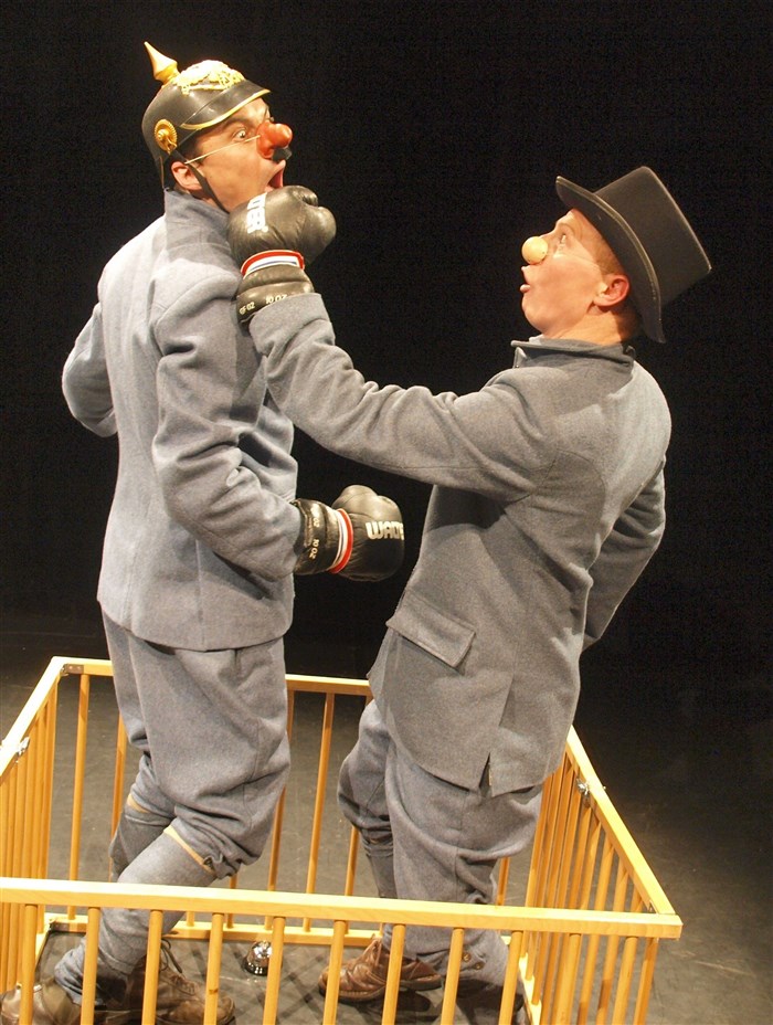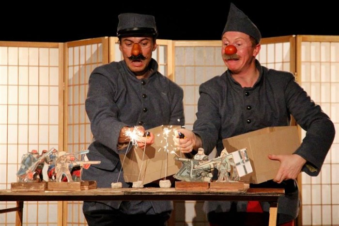 TT - De façon chronologique, ce duo clownesque raconte en un condensé facétieux l'histoire et les absurdités de la Grande Guerre.