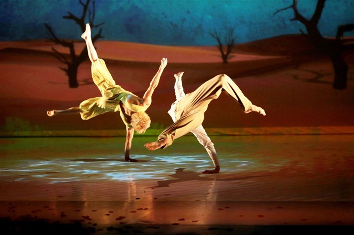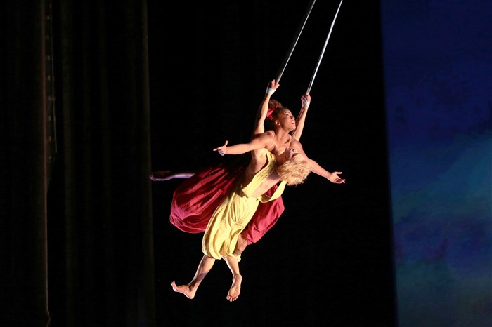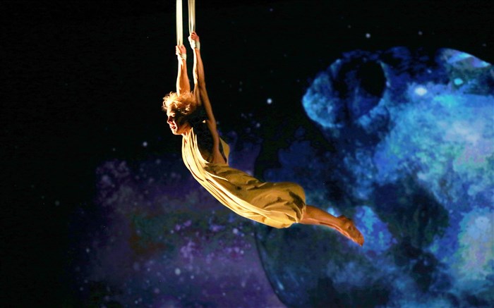 Cette histoire est présentée à travers l'expression du corps par la danse contemporaine et l'acrobatie aérienne.