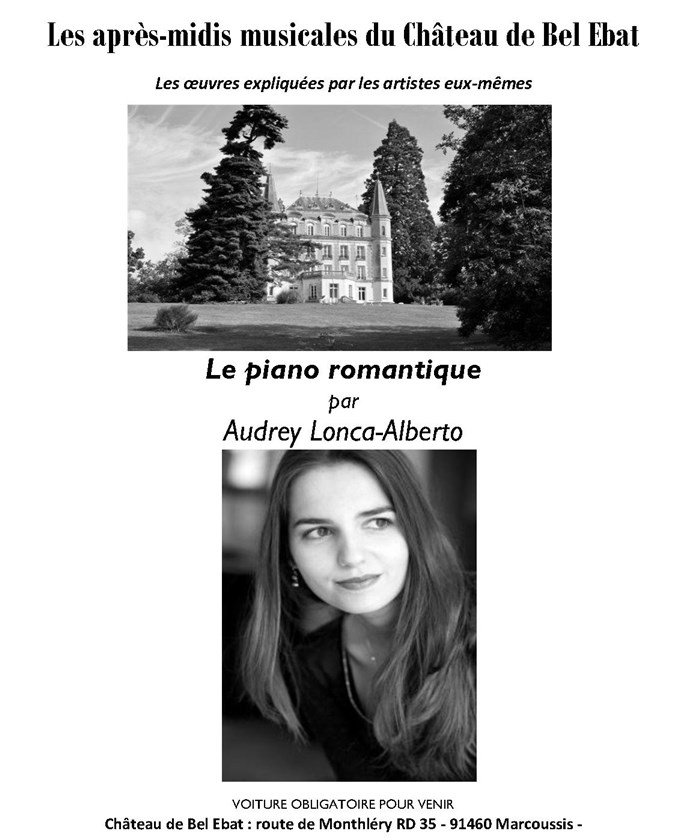 Dans le cadre des Après-midis musicales du château de Bel Ebat, Audrey Lonca-Alberto ouvre la seconde édition des concerts explicatifs avec un thème auquel tout le monde sera sensible, la beauté musicale de l'époque romantique à travers le piano.