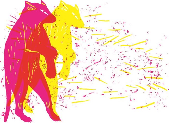 Artiste plasticienne et jongleuse, Elsa Guérin a eu envie de travailler une scénographie autour de la (fausse) fourrure. C'est à partir d'une scénographie " à poils " qu'elle déploie un spectacle fantasmagorique, en duo avec Julia Christ,