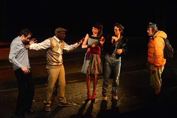 Un espace vide, une ligne au sol, quatre hommes, une femme, Mozart, une seule règle : être le premier!