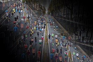 Quatre hommes et une femme font la queue, chacun pour une raison particulière inconnue de nous, mais tous avec la même ambition : être le premier.
