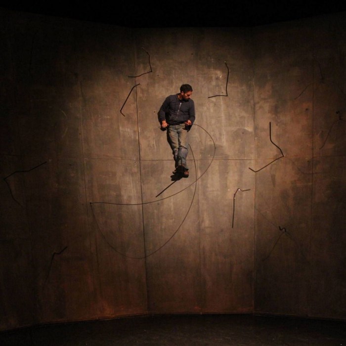 Acrobates, danseurs, les quatre interprètes mettent leurs corps à l'épreuve de cet espace comme une limite à affronter, à dépasser. Un cirque de l'intime et du sensible.