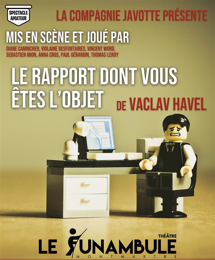 Le Rapport dont vous êtes l'objet est une comédie à l'humeur féroce et à l'ironie mordante signée Vaclav Havel et montée par la Compagnie Javotte, troupe d'amateurs passionnés de théâtre et amoureux de la scène et chasseurs de baleines occasionnels.