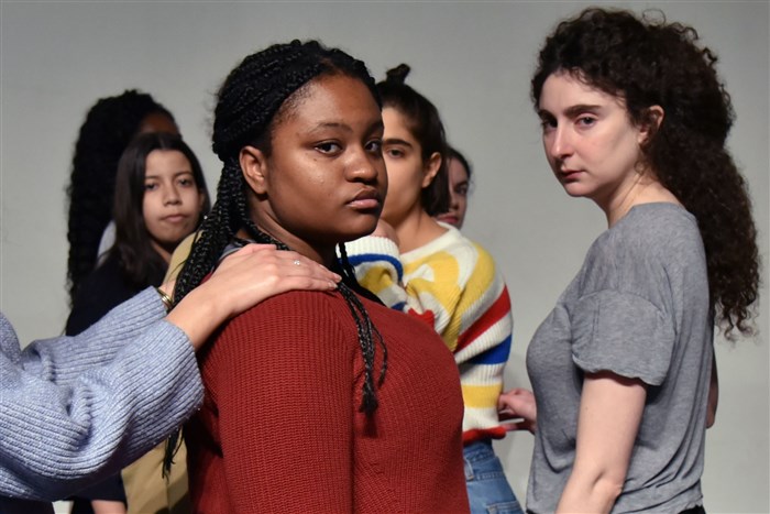 Le reste vous le connaissez par le cinéma met en jeu la rencontre anachronique du mythe d'OEdipe et d'un choeur contemporain d'adolescentes.