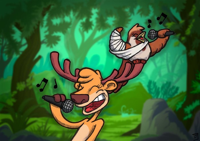 Dans une accueillante forêt vivait Raoul, un renne qui avait une très jolie voix et adorait chanter. Sa meilleure amie, Plume, une oiselle, lui répétait très souvent que c'était dommage qu'il garde tout ce talent pour lui. Lorsqu'un concours de chant est annoncé, les deux amis décident d'y aller. Tout se passera-t-il comme prévu ?