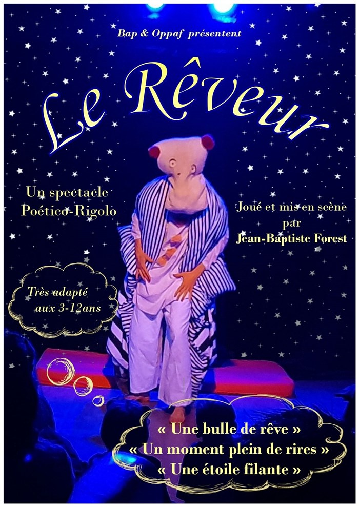 Le rêveur plaît à toute la famille : jonglerie, mimes, surprises, tours de magie, galipettes en tout genre et plein d'interactions avec le public... à partir de 2/3 ans et pour tous ! Les enfants sont ravis et les parents ont beaucoup ri avec cet artiste clown complet, généreux et sincèrement sympathique.