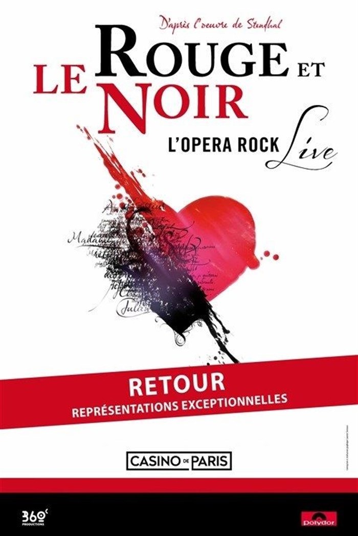 Les amours secrètes et adultères de Julien Sorel et de Mme de Rênal font écho à des sentiments intemporels et d'une criante actualité. L'ambition, la réussite sociale, la passion, la religion, la jalousie, la séduction, l'amour, la mort sont les thèmes de cette bouleversante histoire riche en émotions. Joué en Live, par une troupe de chanteurs/comédiens accompagnée d'un groupe de musiciens, ce grand classique revisité dans une mise en scène novatrice et inspirée, devient un Opéra Rock aussi moderne que bouleversant.