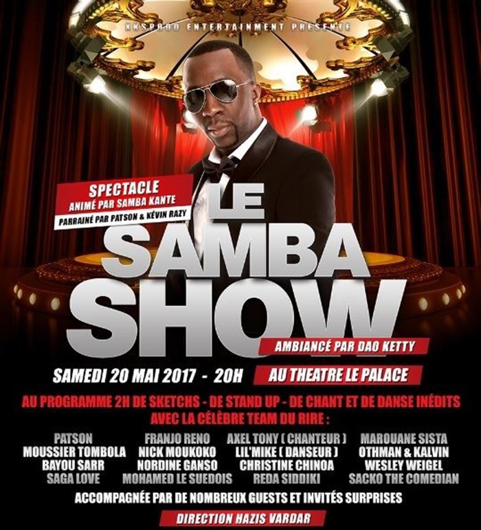 À cette occasion le Samba Show et sa Team du rire , Parrainé par Patson & Kévin Razy, reviennent encore plus déjantés !