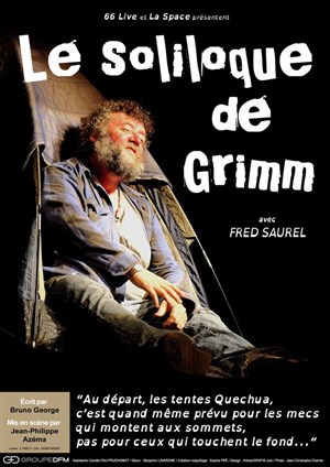 Une bête de scène, des brèves de trottoirs, un décor comme on évite de les regarder sous le béton glacé des échangeurs d'autoroutes, l'humanité, la gueule, l'oeil pétillant d'énergie de Monsieur ( je dis Monsieur par ce qu'il n'y a rien qui cloche ) Monsieur Saurel qui m'a rappelé ce soir l'immense Michel Simon, quel bonheur de drame que ce soliloque de Grimm ! Texte magnifique d'allusions décalées, what else ou Auchan twelve, joué, sublimé par cet incroyable comédien, drôle, émouvant, touchant, profondément juste. Nous nous sommes croisés dans la rue à Avignon et tout de suite nous nous sommes plus. Quelle générosité ! Ce soir pour vous chers lecteurs SDF doit vouloir dire : Sans Doutes, Foncez ! Foncez voir cet animal qui a du chien, l'un de ces trois prochains mardis à 20:30 au Lavoir Moderne Parisien, lieu simplement formidablement résonnant pour cette pièce !