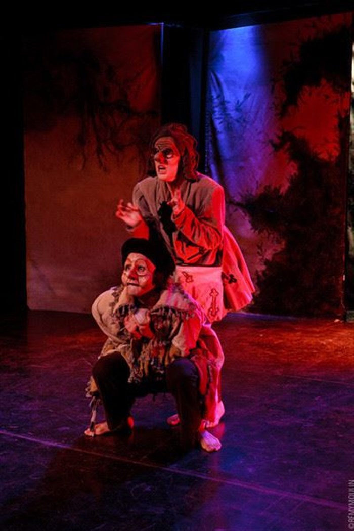 A la façon de saltimbanques, les deux comédiens s'approprient l'univers de Shakespeare en passant du cirque à la danse et du mime au chant.