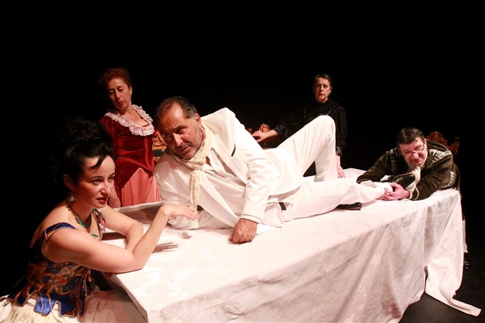 Neuf comédiens (une vraie troupe, quoi !) pour une pièce "à la manière de Molière", mais résolument contemporaine, absolument originale...