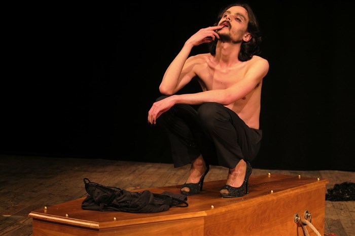 Autour d'un grand cercueil, un jeune homme nous guide dans les forêts profondes de son imaginaire où se croisent figures maternelles et féminines.