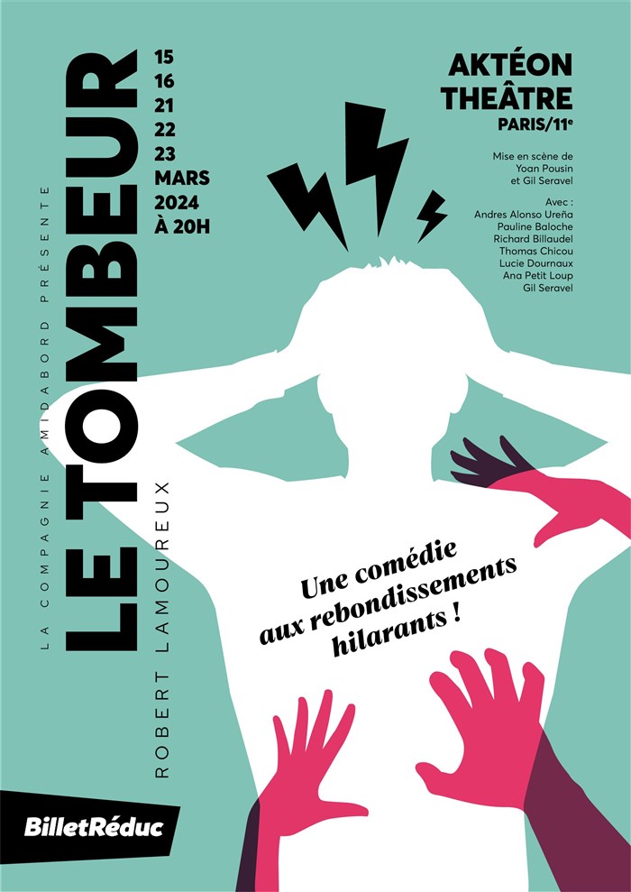 C'est dans un petit théâtre parisien que nous avons assisté à une représentation du TOMBEUR, comédie bien rythmée et modernisée. Les acteurs font une belle prestation et mention spéciale à RICHARD, qui soutient le rôle 1h30. Bravo !