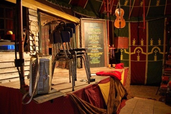Un spectateur propulsé sur la scène et qui boit du poison. Un homme trop petit dans un manteau trop grand, qui se démène comme un diable. Un autre sous un parapluie tressé de feuilles, qui nous parle en ruisselant d'eau. Un enfant sorti par magie d'une boîte. Une femme qui dit je t'aime à un ogre en le mangeant des yeux.