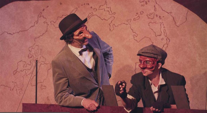 Alternant ombres chinoises mouvantes et mappemonde sur laquelle se dessine le trajet de nos héros au fur et à mesure de leurs escales, le décor émerveille.