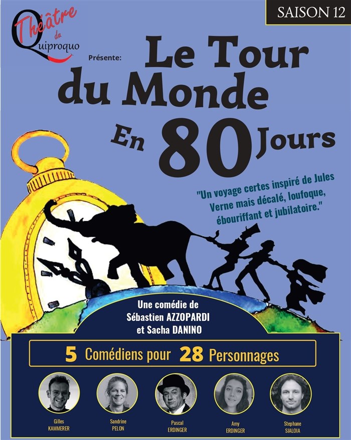 Une comédie décalée et survoltée, librement inspirée de Jules Verne par Sébastien Azzopardi et Sacha Danino avec 5 comédiens pour 28 personnages!