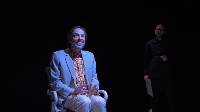 Dans ce tête-à-tête burlesque, un transformiste se révèle. Un homme aux multiples visages, à la fois clown mélancolique, Don Quichotte du quotidien et énigmatique patient. Peu à peu, le puzzle se construit, et l'histoire prend des allures de polar intérieur.