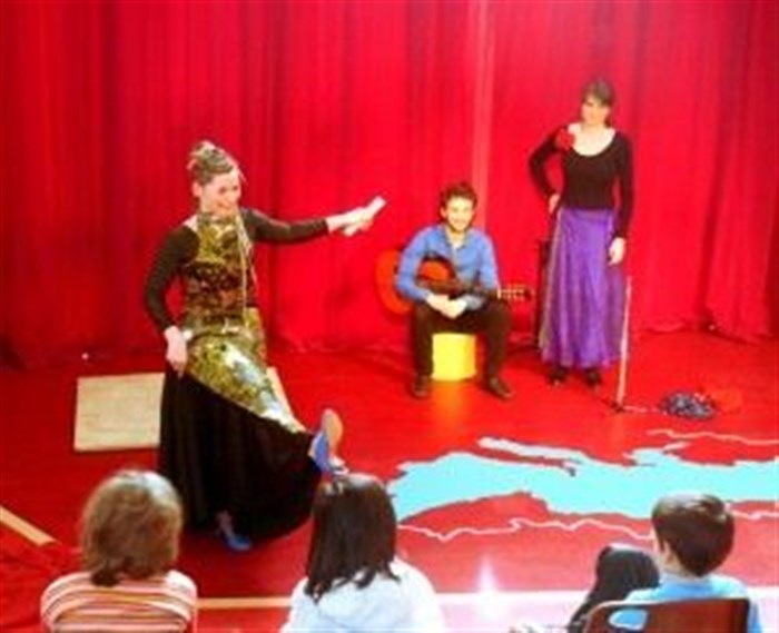 A chaque étape, nous découvrons ensemble les instruments, musiques, danses et métissages locaux. Les enfants participent, apprennent de-ci de-là un rythme oriental, des mouvements de danse indiens, le jaleo andalou (interjections pour encourager les musiciens et danseurs), ou encore un refrain tzigane...