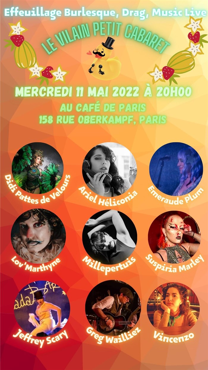 Le Vilain Petit Cabaret vous invite à passer une soirée hautement rocamburlesque le 11 Mai 2022 à 20h30 au Café de Paris !