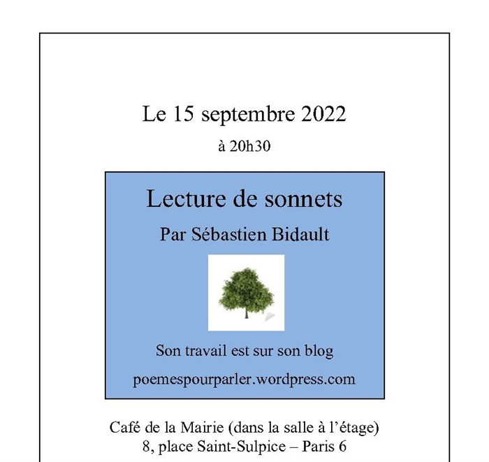 L’événement Lecture de sonnets de type Lecture / Poésie / Contes, organisé ici :