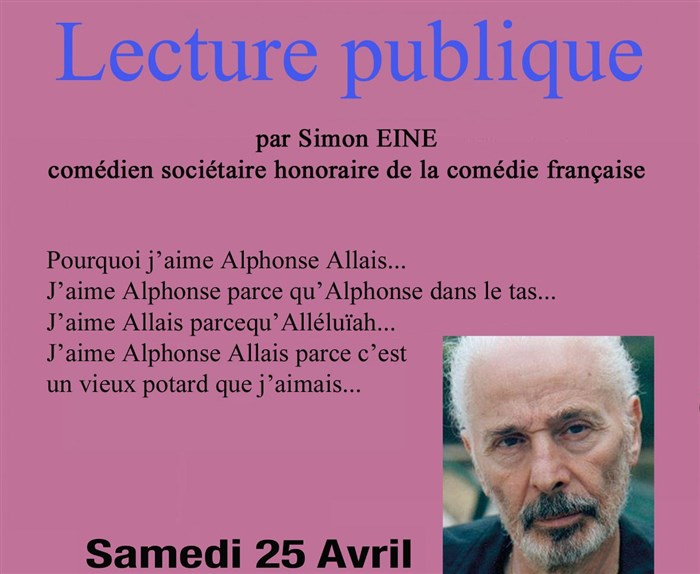 Lecture Publique d'Alphons Allais par Simon Eine Comédien sociétaire honoraire de la comédie française
