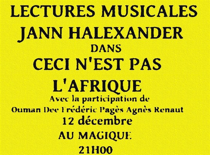 L’événement Lectures Musicales 'Ceci n'est pas l'Afrique' avec Jann Halexander de type Lecture / Rencontre / Conférence / Masterclass, organisé ici :