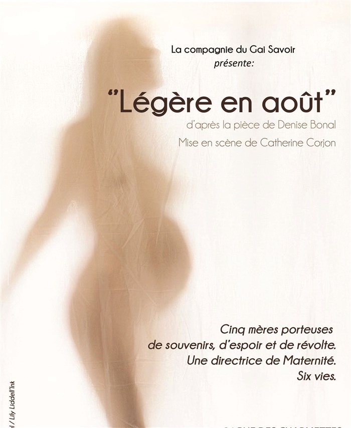 La pièce de Denise Bonal, Légère en Août, ouvre le débat de la gestation pour autrui, dans les années précédant la légalisation de l'avortement, en France.