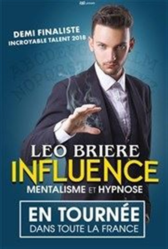 Dans "Influence", Léo Brière lit en vous comme dans un livre ouvert ! Plongé dans une ambiance mystérieuse, Léo Brière repousse toutes les limites et enchaîne, avec la participation du public, plusieurs expériences plus déconcertantes les unes que les autres ! Expériences de transmission de pensées, prédiction, hypnose, spiritisme...