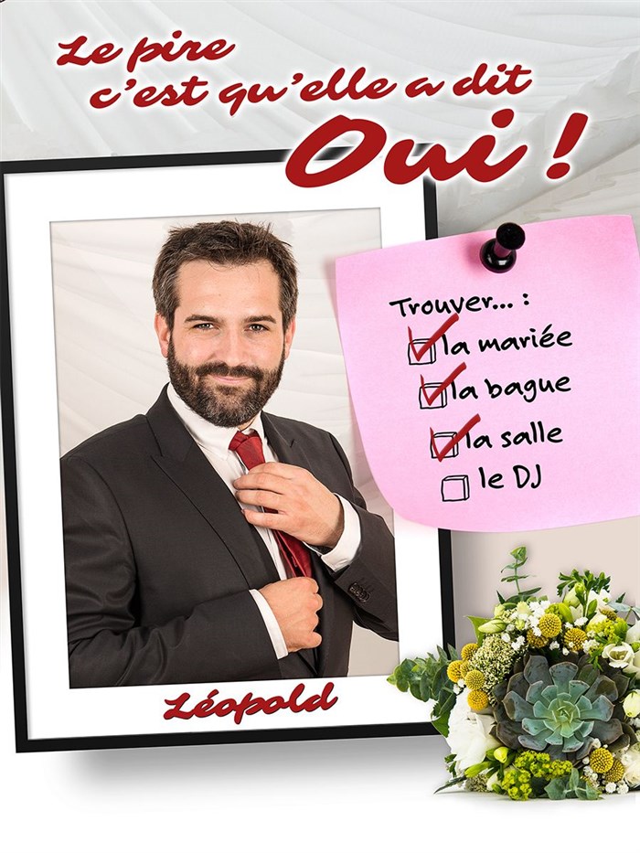 Par le biais de personnages atypiques, Léopold vous livre ses pensées sur le mariage. Si vous êtes mariés, si vous allez vous marier ou même si ce n'est pas encore le moment de parler mariage, Léopold saura vous faire rire !