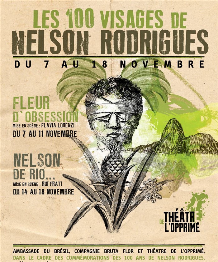 Nelson Rodrigues est l'auteur fondateur du théâtre brésilien moderne. Le théâtre de l'opprimé présente deux créations "Fleur d'Obsession" et "Nelson de Rio...." pour faire découvrir cet auteur méconnu, et dont on commémore le 100e anniversaire de naissance cette année.