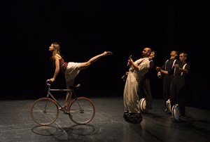 En s'emparant de mono-roues électriques, les gyropodes, les Acrostiches ont réussi la gageure de transformer un moyen de transport individuel, stable et tranquille en quelque chose de collectif, incontrôlable et épuisant...