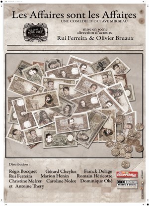 A l'heure ou les Politiques de tous bord nous jouent la Comédie, la Succulente Représentation Théâtrale "Les Affaires sont les Affaires " de l'écrivain français Octave Mirbeau (1917 – 2017) dont nous fêtons cette année le Centenaire de sa mort à été Adaptée de main de Maître. L'excellent Metteur en Scène et Comédien Acteur Rui Ferreira plante un Isidore LECHAT, dont le Tempérament est Forgé dans l'Acier. Totalement Imbu de sa personne, Arriviste et Opportuniste dans le Monde des Affaires, Rien ou si peu de choses lui échappent, étant toujours à l'affut de la moindre Affaire. Le Monde des Affaires dans sa Réelle Splendeur ! Cette Comédie en Trois Actes et qui a été jouée sur toutes les Scènes du Monde à toujours connu un Franc Succès. Elle ne se dément pas et les Comédiens de la Troupe du Théâtre du Nord-Ouest la joue Magistralement depuis quatre ans. Ils n'ont pas pris une ride. C'est dans des Costumes d'époque qu'ils évoluent avec Brio, Distinctions et Prestances, et ce pour notre plus grand plaisir et Celles et Ceux qui Découvrent ou Redécouvrent ce Spectacle. La Renommée de cette Comédie est Brillamment portée à son Paroxysme. Un Texte Remarquablement interprété ! Un Grand Moment ! Inoubliable ! Shuss & Do !