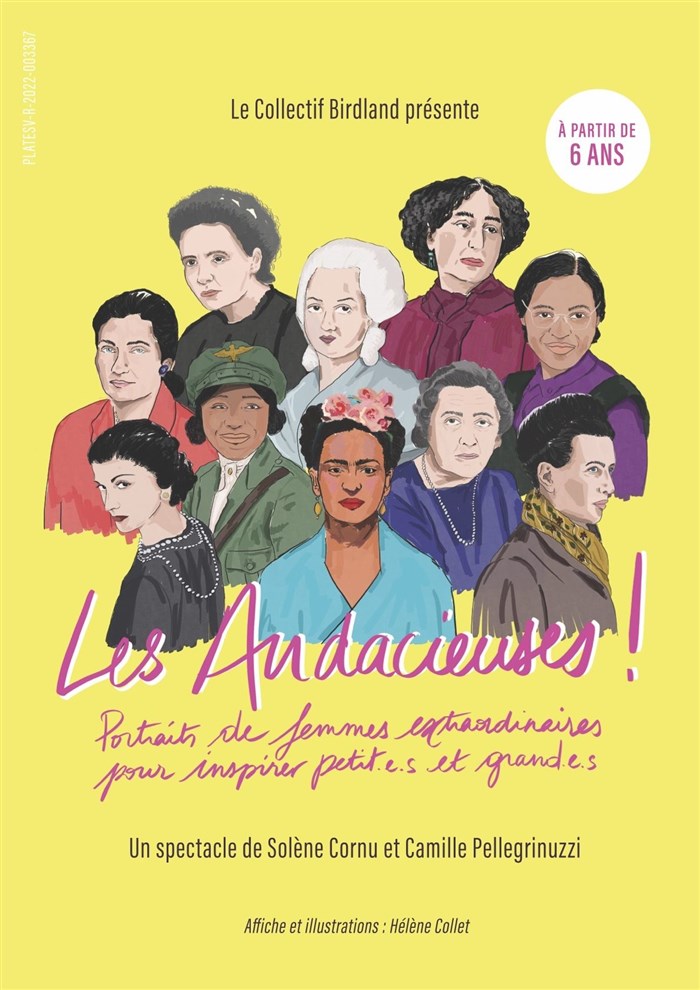 Vu avec mes filles de 6 et 10 ans, le spectacle a beaucoup plu aux deux. Un spectacle très drôle et qui offre des niveaux de compréhension différents pour plaire aux plus jeunes et aux plus grands. On (re)découvre avec plaisir et intérêt la vie de ces grandes femmes. Mise en scène originale, de belles trouvailles, bravo!