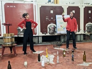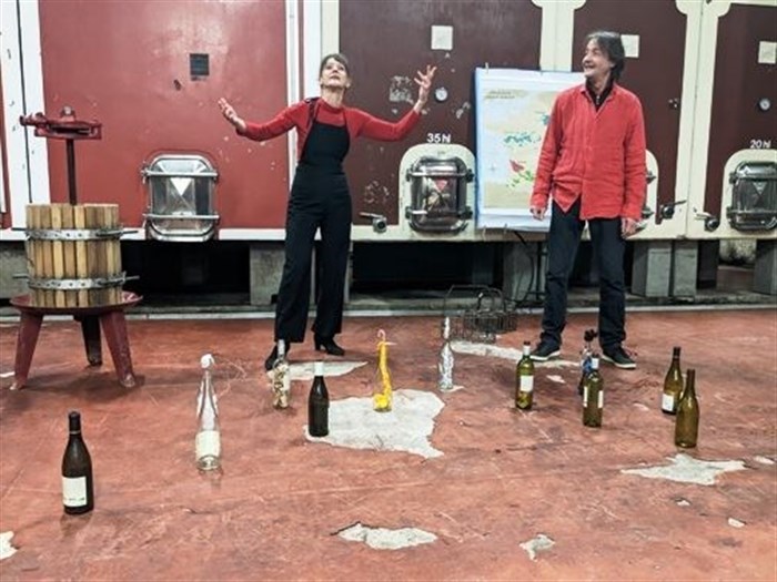 Finalement, c'est Dionysos, lui-même, directement sorti des Bacchantes d'Euripide, qui, réconciliant poésie et oenologie, finit par inviter sur scène le vigneron accueillant le spectacle pour une brève présentation de son cru. Et c'est sur le texte de Jean Giono, Le petit vin de Presbois, que s'achève ce voyage en terre viticole.