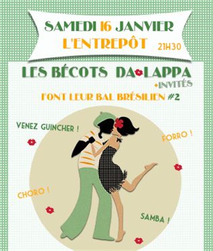 Les sambas, les choros et les forros... sont une invitation à la danse. L'Entrepôt sera votre parquet pour le 2ème bal des Bécots da Lappa, qui s'entoureront d'amis musiciens !