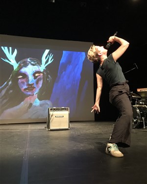 Dans cette adaptation du feuilleton de Murielle Szac, la déesse entre en scène, accompagnée d'un batteur, d'un pianiste et d'une dessinatrice.