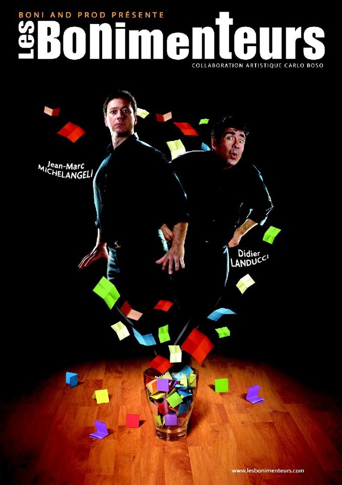 Les Bonimenteurs est un spectacle d'humour élégant interactif qui allie écriture et improvisation.