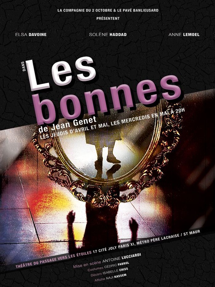 Depuis le temps que je souhaitais découvrir les Bonnes de Jean Genet, je n'ai pas longtemps hésité lorsque j'ai vu que cette pièce était proposée à l'affiche. J'ai été très agréablement surpris par le texte de Genet, par sa richesse, les différents niveaux de langue qu'il utilise, etc. Il s'agit d'un tout petit théâtre mais la mise en scène, les costumes et le décor sont vraiment réussis. Surtout, les 3 actrices sont pleines de talent. Bref je vous conseille à la fois pour découvrir Genet et pour passer un excellent moment de spectacle.
